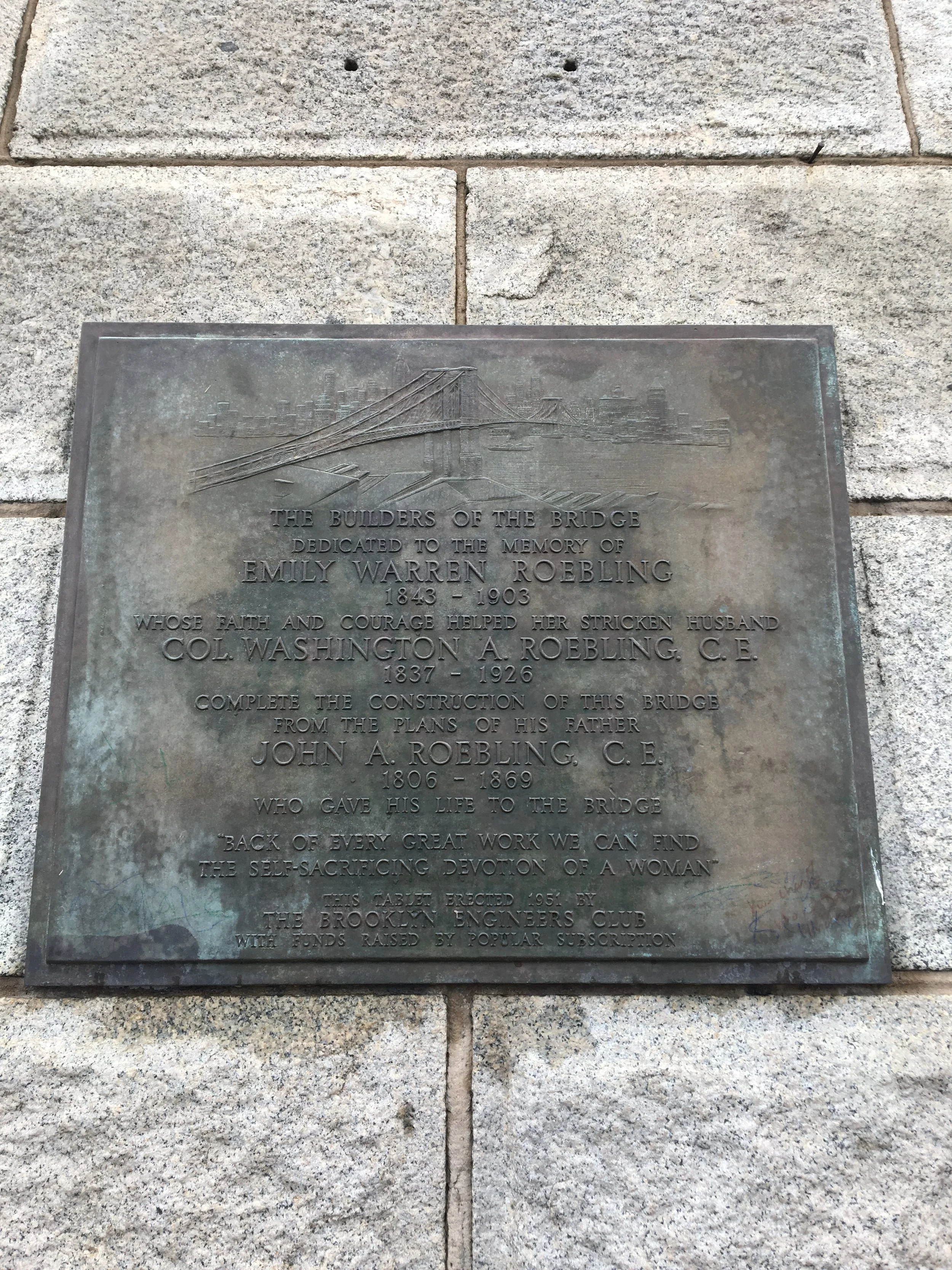 Emily Warren Roebling plaque on Brooklyn Bridge, NY